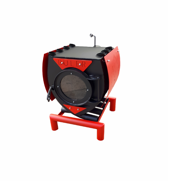 Піч Булер'ян Тип-02 Buler має потужність 18 кВт і здатний запити будь-яке приміщення (СТО, автомийки, дачі, промислові приміщення, гараж тощо) яка не перевищує 400 м3. Ця піч обладнана захисним кожухом і великим круглим склом. Захисний кожух слугує для захисту від нещасного дотику до Булер'янау, яка сильно нагрівається, також він надає красу печці Адже кожух можна пофарбувати в будь-який колір. У такий спосіб він може красиво вписатися у будь-який інтер'єр приміщення, де стоятиме печка. Завдяки великому склу ви зможете спостерігати за процесом горіння вогню, також як на дорогих камінах. Також піч має зольний ящик для зручнішого чищення Булер'яну от відходів деревини. Піч має варильною поверхнею, завдяки якій ви зможете не тільки зігрітися в холодну пору року, але й підігріти воду, висушити дрова, а також приготувати їжу без додаткових витрат на газ і електроенергію. Також для ефективнішого використання варильної поверхні є модифікація з конфоркою. Конструкція Булер'яна виготовлена так, що він сам, завдяки конвекції рівномірно прогріває все приміщення. Знизу він засмоктує у свої труби холодне повітря, а зверху виходить уже прогріте повітря (до 110*). Піч має два регулятори загального функціонування: регулятором повітря й регулятором димових газів, з їхньою допомогою піч переводиться в режим тління. Також піч має дві камери згоряння. У нижній топки тверде паливо тліє, виділяючи піролізний газ, а у верхній топки піролізний газ догоряє за допомогою повітря, що потрапляє через вбудовані форсунки. Завдяки цьому ця піч (Тип-02) може працювати на одній закладці дров до 7 годин безперервної роботи. Конструкція такої топки дає змогу повне використання палива та високий ККД (до 75%). Розробляє піч на всіх різновидах твердого палива та їх відходах.